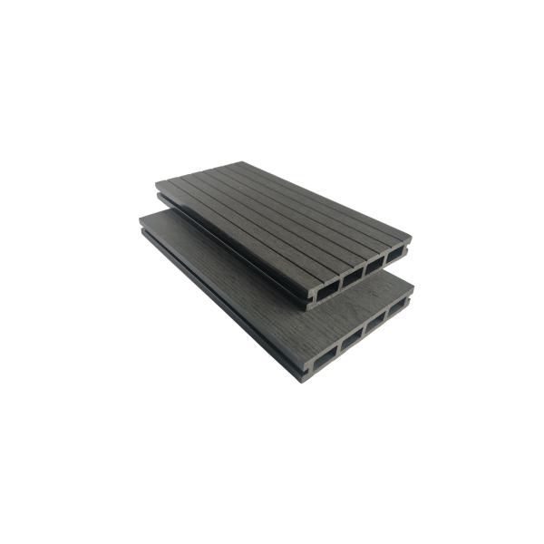 Our hollow core composite decking boards have a lightweight honeycomb construction and are reversible with narrow spaced grooves on one side and plain surface on the other side. One sides provide a robust anti-slip walking surface, are easy to clean, and require very little maintenance.